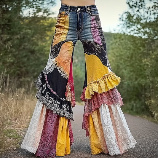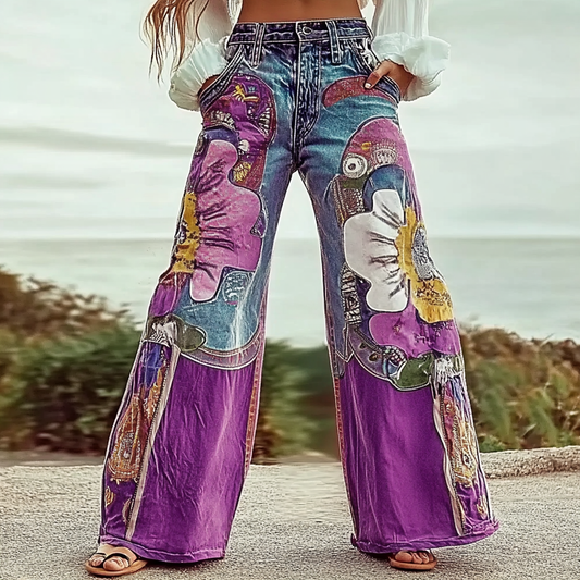 Vintage Loose Casual Colorful Splicing Jeans 492b
