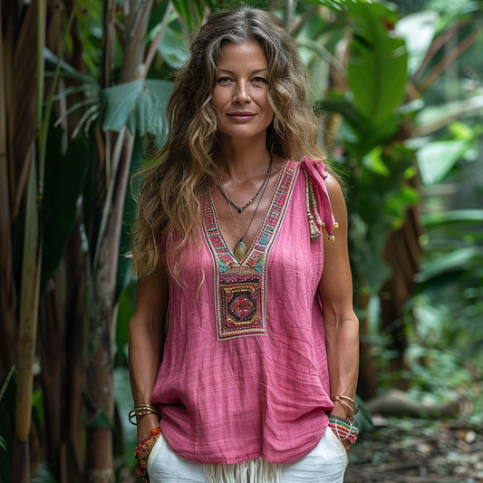 Women's Bohemia Linen Ethnic Style Sleeveless Vest Top Shirt