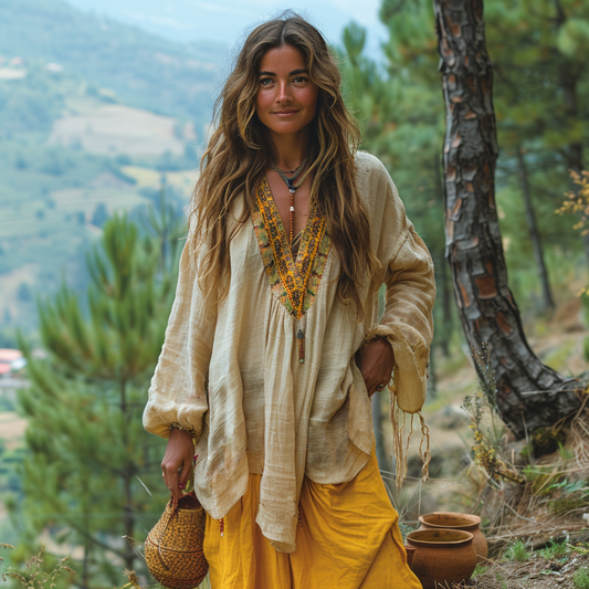 Women's Linen Bohemia Style Long-sleeved Breathable Top Shirt