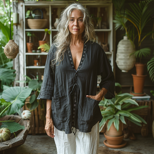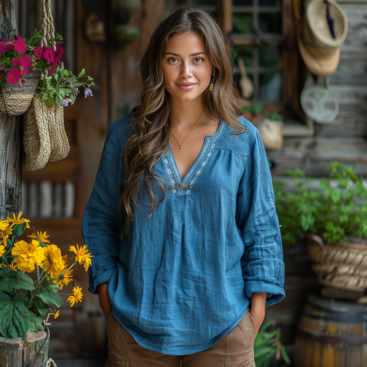 Women's Casual Bohemian Linen Style Long-sleeve Top Shirt