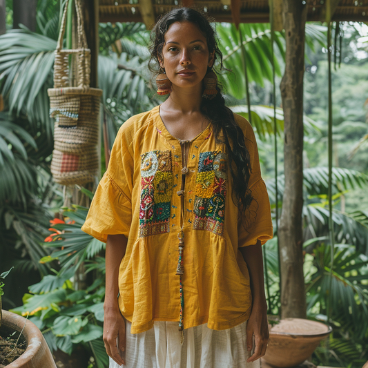 Women's Casual Bohemia Linen Style Short-sleeved Top Shirt