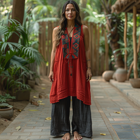 Women's Retro Loose Bohemia Ethnic Style Linen Sleeveless Long Top Shirt