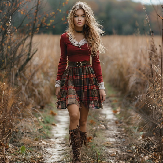 Women's Autumn And Winter Long-sleeve Dress Short Skirt Christmas Plaid Skirt