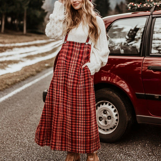 Women Christmas Party Plaid Print Suspender Dress