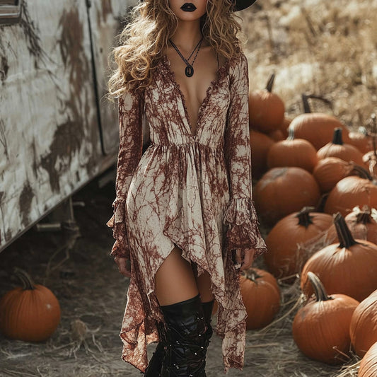 Women's Halloween Witch Style Tie-dye Long-sleeve Mini Short Dress