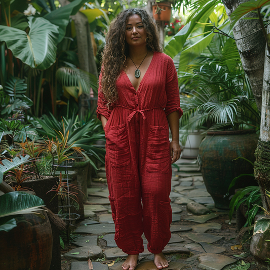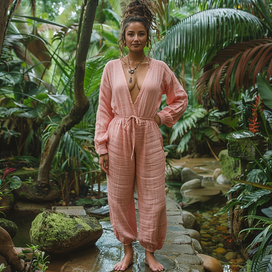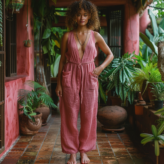 Women's Linen Retro Ethnic Bohemia Style Large Silhouette V-neck Jumpsuit