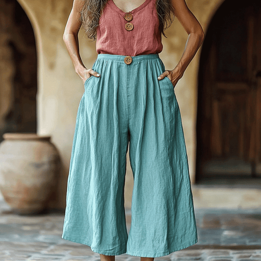 Women's Linen Bohemian Cropped Wide-leg Trouser Pants