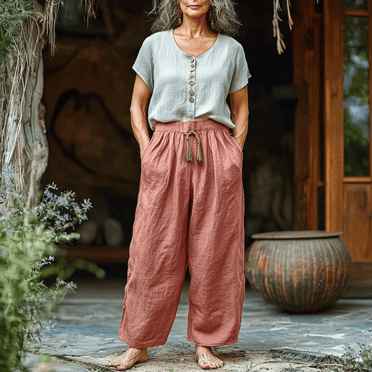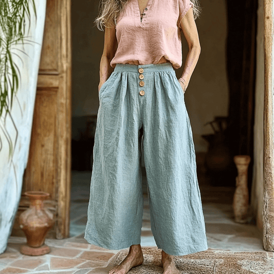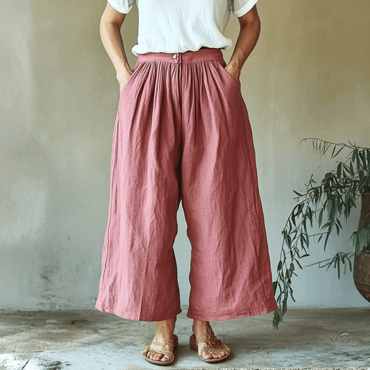 Women's Linen Bohemian Cropped Casual Wide-leg Trouser Pants