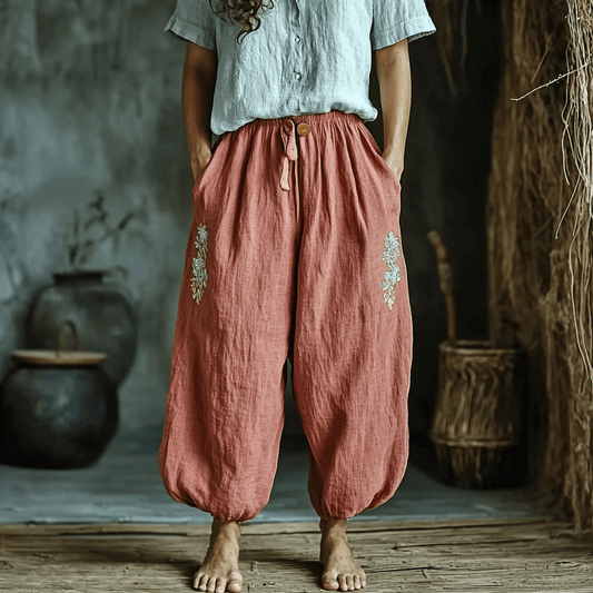 Women's Linen Bohemian Floral Casual Harem Trouser Pants