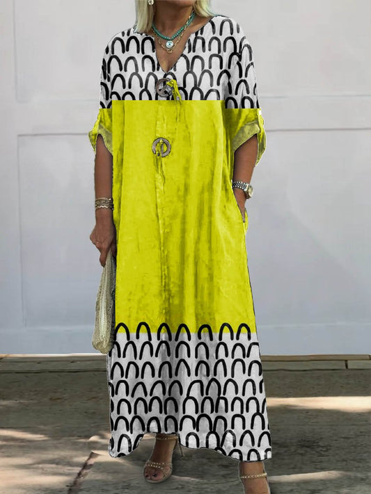 Women's Retro Geometric Art Print Pocket Cotton Dress