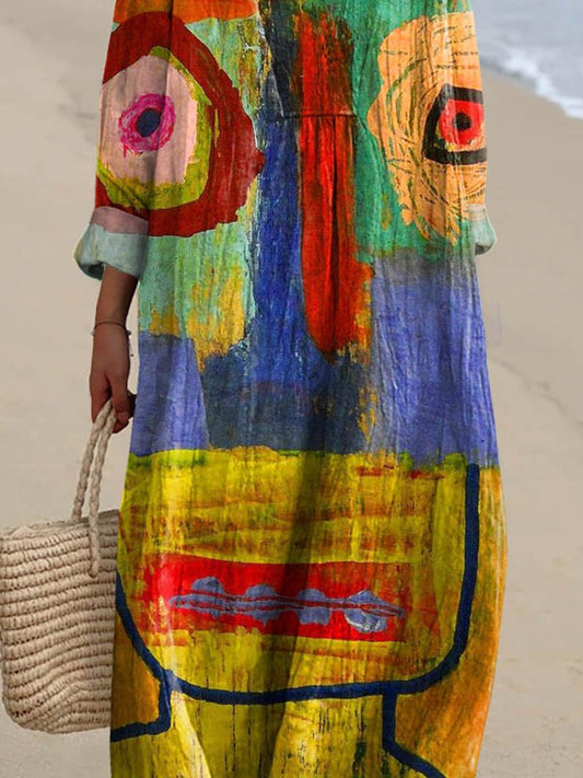 Women's Vintage Abstract Figure Painting Art Print Casual Dress