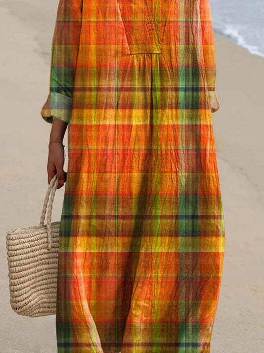 Women's Vintage Plaid Pattern Art Print Casual Dress