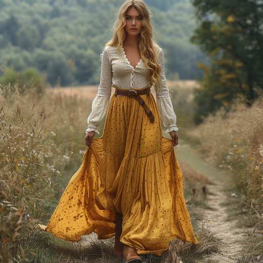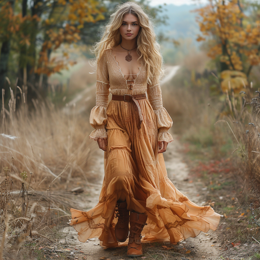 Women's Retro Country Pastoral Linen Style Long-sleeve Casual Maxi Long Dress
