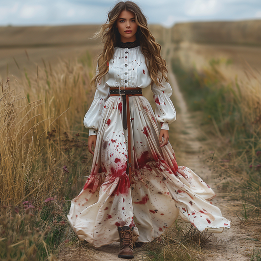 Women's Retro V-neck Pastoral Halloween Party Style Long-sleeve Maxi Long Dress