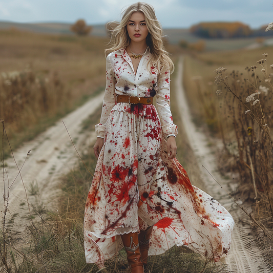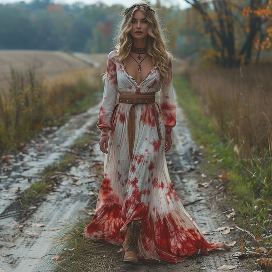Women's Retro V-neck Pastoral Halloween Party Style Long-sleeve Maxi Long Dress