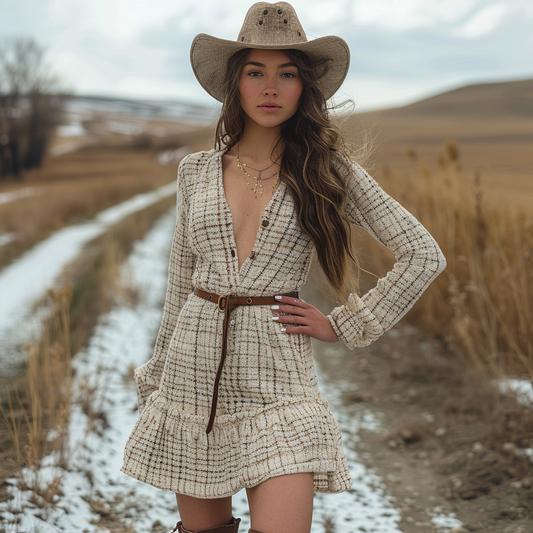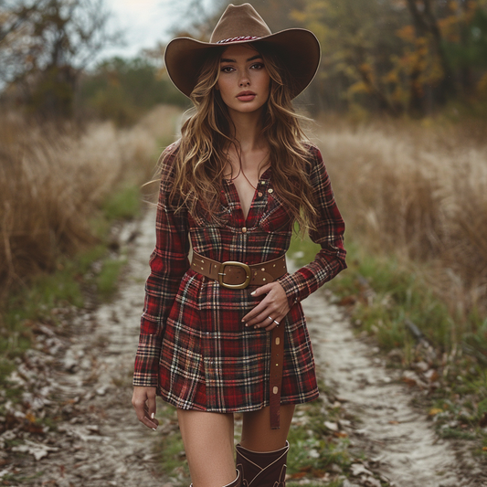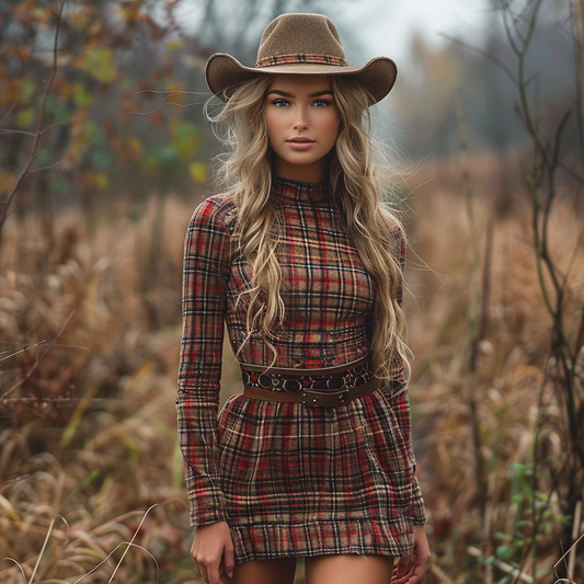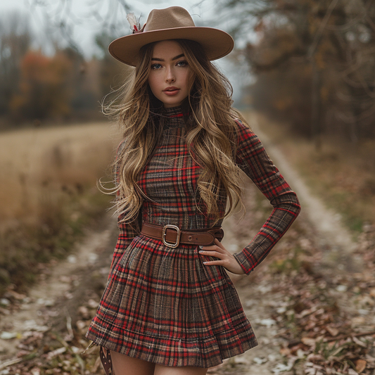 Women's Retro Plaid Pastoral Style Long-sleeve Short Dress